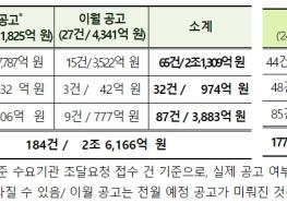 이 가운데 신규 공고는 157건, 2조 1,825억 원, 이월 공고는 27건, 4,341억 원 규모다.