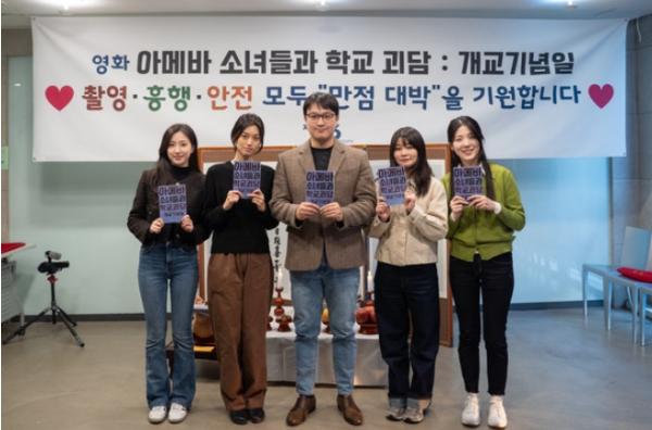 영화 '아메바 소녀들과 학교괴담: 개교기념일'은 평균 성적 8등급의 방송부 소녀들이 우연히 ‘1998년 개교기념일 귀신 숨바꼭질’ 테이프를 발견하면서 수능 만점을 위해 귀신과 목숨을 건 저주의 숨바꼭질에 도전하는 이야기를 담은 호러 코미디로, 2024년 1월 16일 크랭크인 소식을 알리며 첫 번째 베일을 벗었다.