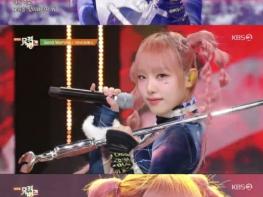 이날 최예나는 핑크 컬러의 헤어를 양갈래로 땋아 러블리한 매력을 더 높였다. 화이트 앤 블루 스타일링으로 힙한 매력을 자아낸 최예나는 사랑스러운 비주얼과는 또 다른 파워풀한 가창력으로 반전 매력을 선사하며 완성도 높은 무대를 꾸몄다.