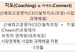올해부터는 기술기반 업종 중 반도체, 생명공학(바이오), 생활양식(라이프스타일) 분야에 집중 육성할 계획이며, 선정된 기업에게는 약 7개월 간 맞춤형 교육·상담(멘토링), 사업화 자금, 협력 연계망(네트워크) 등 전방위 지원체계가 제공된다.