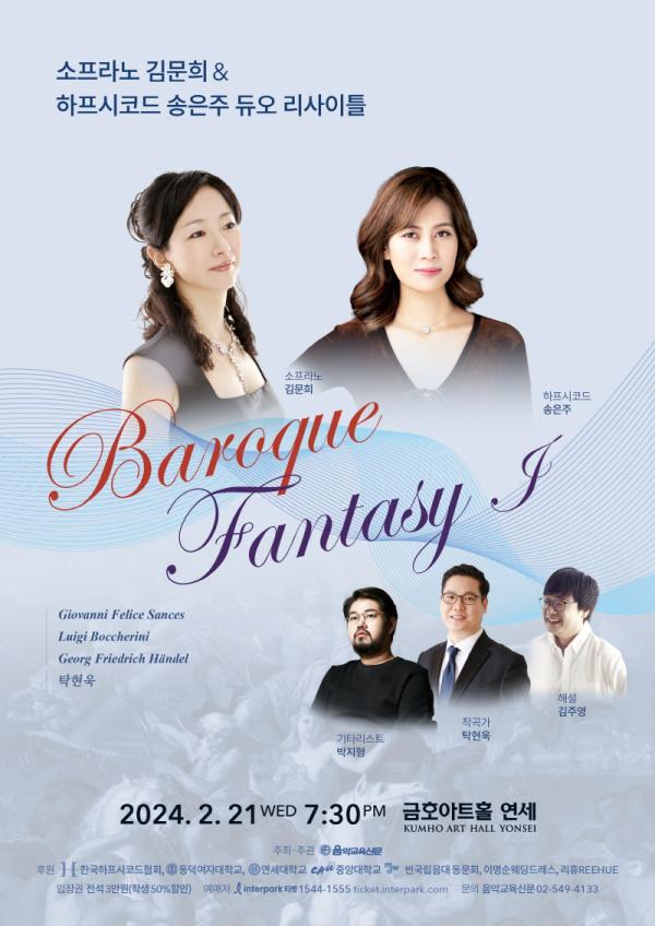 예술의 힘은 복잡한 일상에서 벗어나 신선한 영감을 호흡하게 한다. ‘다듬어지지 않은 진주’라는 바로크의 어원처럼 ‘균형과 조화’의 고전음악과는 한층 결이 다른 점에서, 역동성과 신선함이 크나큰 매력으로 다가올 것 같다. 봄 기운이 감도는 때에 아름답고 우아한 음색을 지닌 김문희 소프라노와 바로크음악에 앞장서서 이끌고 있는 섬세한 해석과 지적인 송은주 쳄발리스트의 연주, 창작 영감으로 청중을 사로잡는 탁현욱 작곡가.기타아 음악으로 두터운 팬을 확보하고 있는 박지형, 귀에 쏙쏙 들어오는 김주영의 해설이 펼치는 ‘바로크 환타지’는 새로운 꿈과 도전, 비전의 날개로 우리들을 상상의 세계로 안내 할 것이다. 이 음악회는 그래서 아주 특별한 콘서트이다.
