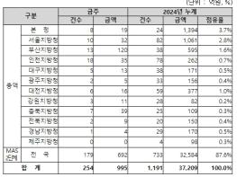 지역별 발주량을 보면, 총액계약 대상 303억 원 중 본청이 19억 원으로 6.3%를 집행하고 서울청 등 11개 지방청에서 284억 원을 각각 집행할 예정이다.