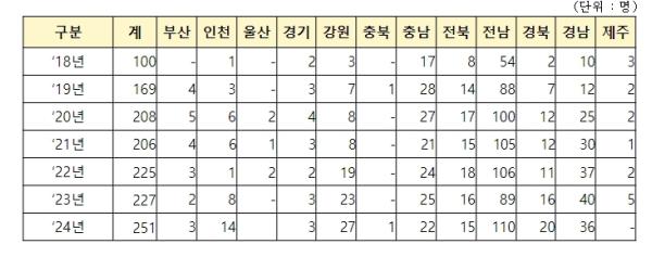 해양수산부는 지원 대상자 모집을 위해 지난해 12월경 지자체별 모집공고를 진행했으며, 서류심사 및 면접 등을 거쳐 최종 251명을 선정했다. 또한, 개인사유 등으로 신청자가 중도 취소한 시·군·구에서는 추가 모집공고를 진행할 예정이며, 지원을 희망하는 자는 거주하고 있는 지역의 관할 시·군·구에 문의하여 모집 일정과 필요 서류를 확인하고 신청할 수 있다.