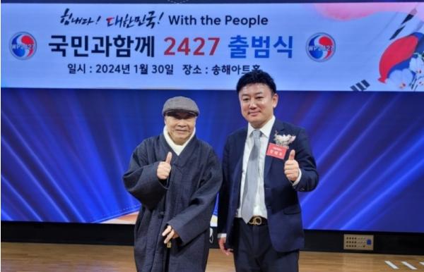 지난?30일?오후?2시?서울의?송해아트홀에서?관계자와?내.외빈등?200여명이?참석한?가운데?’국민과함께2427‘(총재?박찬종,?회장?지용운)이?출범식을?가졌다.