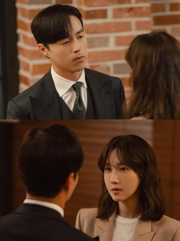 판세가 바뀔지 궁금증을 더하는 가운데 '솔루션' 사무실에 찾아간 노율성의 모습이 포착돼 시선을 끈다. 사진 속 노율성은 굳은 표정과 서늘한 눈빛으로 김사라를 응시하고 있는 반면 김사라는 노율성의 시선에도 당당함을 잃지 않는다.