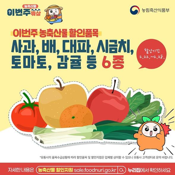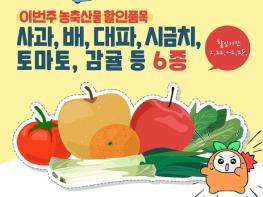 사과, 배, 대파, 시금치, 토마토, 감귤 등 6종 품목을 20% 할인합니다.