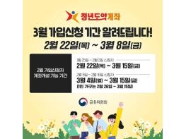 [한국쇼핑몰뉴스, 최영진기자] 청년도약계좌 3월 가입신청 기간은 2월 22일(목)~3월 8일(금)입니다!