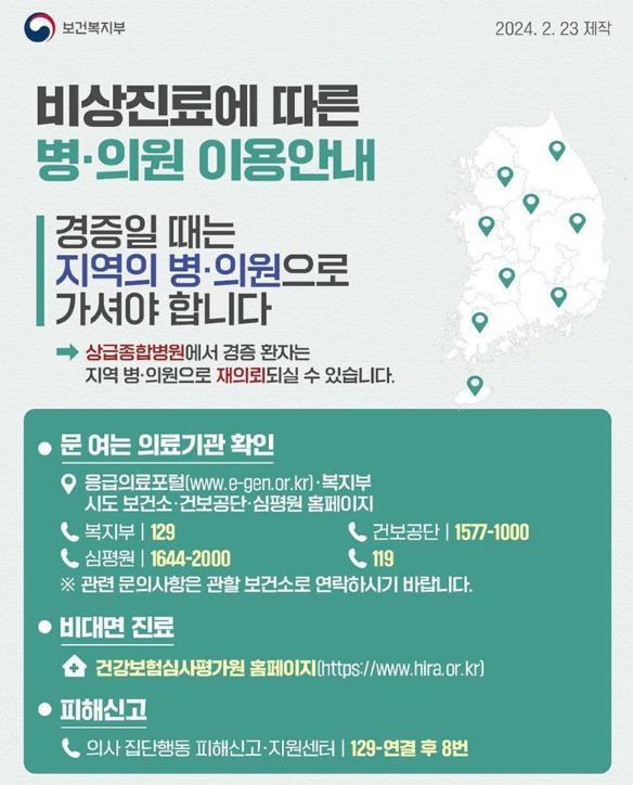 의사 집단행동 피해신고·지원센터 : ☎ 129-연결 후 8번