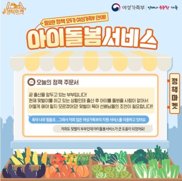 부모의 맞벌이 등으로 양육 공백이 발생한 12세 이하 아동의 가정에 아이돌보미가 방문해 돌봄 서비스를 제공