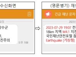 [한국쇼핑몰뉴스, 최영진기자] 행정안전부와 기상청은 경보음을 동반하는 위급?긴급 재난문자 발송 시, 재난유형과 지진규모 등 재난발생 핵심정보에 대해 영문 표기를 병행하여 한국어에 능숙하지 않은 외국인들도 재난상황을 쉽게 이해할 수 있도록 표준문안 및 시스템을 개선한다.