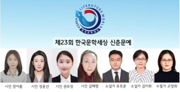 한국문학세상(회장 김영일)은, 지난 1월 1달간 ‘종이 없는 작가등용문’으로 '제23회 한국문학세상 신춘문예'를 '공모전 투명심사 시스템'으로 공모해, 신인 7명을 당선자로 선정했다.
