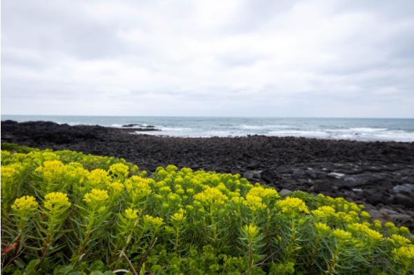 암대극(巖大戟)은 제주도와 남부 지방의 해안가 바위틈에서 자라는 여러해살이 식물이다. 암대극은 대극과 식물로 재배식물은 유포르비아(Euphorbia)라고도 불리며 우리가 알고 있는 식물 중에는 기린초, 설악초 그리고 포인세티아 등이 있다. 이 식물은 이름에 나타난 것처럼 ‘해안가 바위틈에서 자라는 대극’이라는 뜻을 지니고 있다. 3월 말부터 피기 시작하는 노란색 꽃이 아름다운 이 식물은 해안가 검은색 바위와 암대극의 노란색 꽃이 대비되어 자생지에서는 장관을 연출하기도 한다.