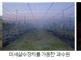 미세살수장치는 물을 안개처럼 뿜어내며, 물이 얼음으로 변할 때 나오는 열을 이용해 꽃(꽃눈)이 얼지 않게 한다. 살수량과 물 온도에 따라 나무에 전달되는 에너지가 달라지는데, 20도(℃)의 물 1리터를 나무에 뿌려주면 총 100kcal의 에너지가 꽃눈에 전달된다.