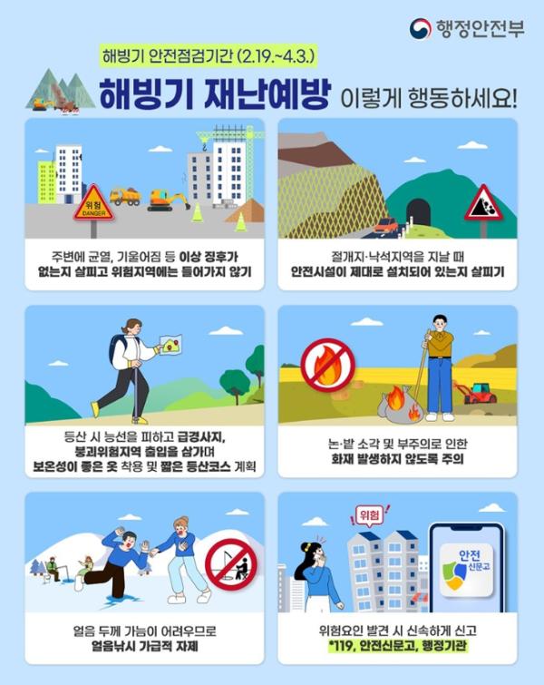 해빙기 안전점검기간을 맞아 행동요령을 꼭 기억해 안전한 일상 보내요!