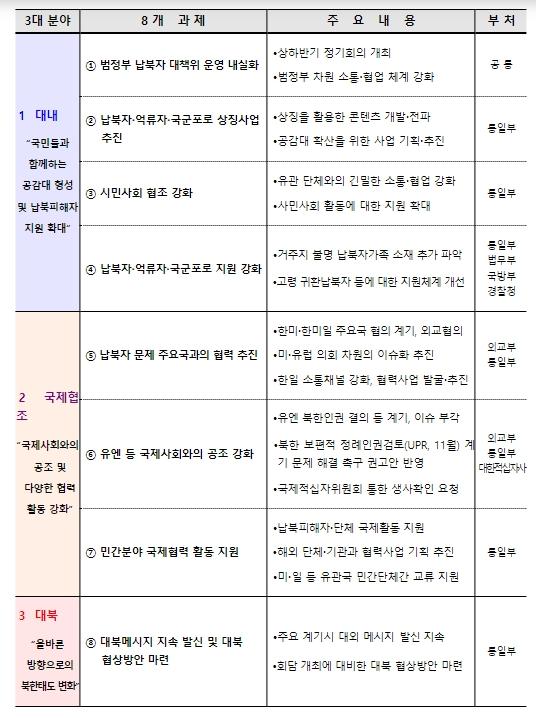 납북자?억류자?국군포로 문제 해결을 위해, 올해 3개 분야 8개 과제를 범정부 차원에서 중점 추진하기로 했다.