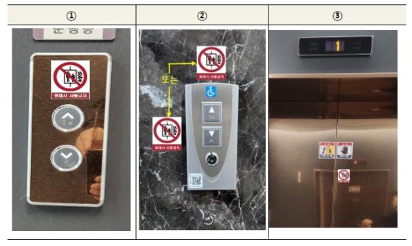 이번에 보급되는 안내표지는 승강기에 탑승하기 전 ‘화재 시 사용금지’를 바로 인식할 수 있도록 호출 버튼 부근 잘 보이는 곳에 부착된다.