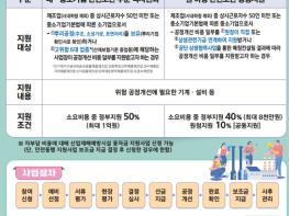 특히 원·하청(대중소기업) 간 상생을 위한 지원도 강화됐다. 원청에서 공정개선 비용의 일부를 지원하는 사외협력업체의 경우 최우선 지원받을 수 있다. 또한 제조업이라면 업종과 관계없이 상시근로자가 50명이 넘더라도 중소기업기본법에 따른 중소기업에 해당하면 지원받을 수 있다.