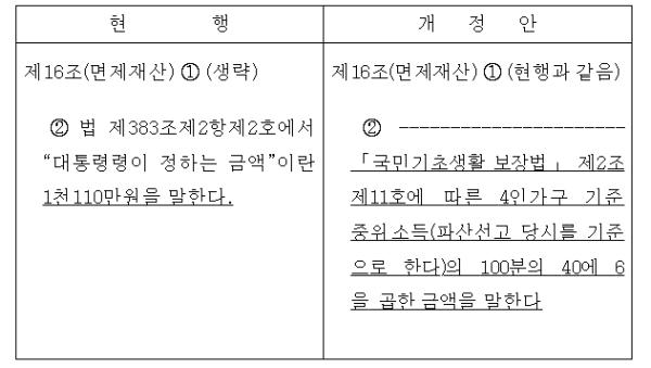 생계비 명목 파산재단 면제재산 상한을 ‘정률’로 개정