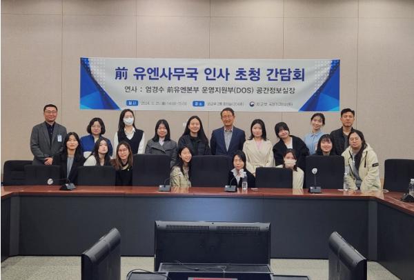이번 간담회에 참석한 엄경수 前 유엔사무국 운영지원부(DOS) 공간정보실장(Chief, UN Geospatial Information Section)은 유엔의 주요 업무, 직원 현황, 채용 방법 등을 소개하고, 국제기구 근무 경험담과 진출 노하우를 공유했다. 참석자들은 간담회에서 얻은 실질적인 정보와 생생한 경험담이 국제기구 진출 계획을 세우는데 많은 도움이 됐다고 평가했다.