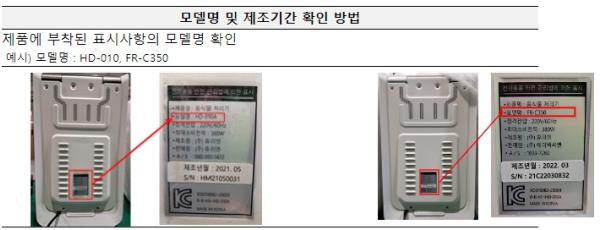 [한국쇼핑몰뉴스, 최영진기자] 산업통상자원부 국가기술표준원은 ㈜휴리엔이 제조한 음식물 처리기 2개 모델(모델명: HD-010, FR-C350 / 제조기간: ’21.3월 ~’22.5월 / 판매대수: 7,169대)의 드럼통 내구성 문제로 인해 화재 발생 우려가 있어, ㈜휴리엔이 3월 27일부터 자발적 리콜(무상 수리)을 실시한다고 밝혔다.