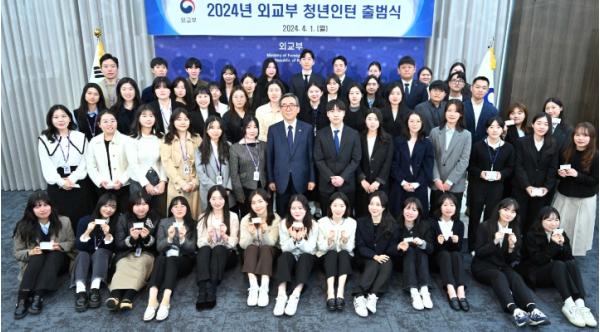 [한국쇼핑몰뉴스, 최영진기자] 외교부는 4월 1일 광화문 외교부 청사 18층 서희홀에서 2024년 외교부 청년인턴 출범식을 개최했다고 밝혔다. 이날 행사에는 조태열 외교장관과 청년인턴 1기 56명, 청년인턴 근무 예정 부서 직원 30여 명이 참석했다.