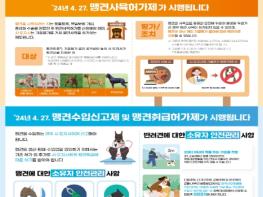 둘째, 맹견 개체 이력 관리 등을 위해 맹견수입신고를 의무화했으며, 맹견을 취급하는 영업(생산·수입·판매)을 하려는 자는 맹견 취급을 위한 시설 및 인력 기준을 갖추고, 시·도지사에게 허가를 받아야 한다. 또한, 맹견취급자의 준수사항과 안전관리·사고방지를 위한 교육을 의무화하도록 했다.