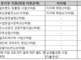 1년차에는 중기부가 공동 상표화(브랜딩), 상품개발 등 지역사업(로컬비즈니스) 확장과 지역 예비소상공인의 창업·혁신 프로그램 운영에 사용할 수 있는 자금 5억원을 지원하고, 2년차에는 지자체가 상권연계 축제기획, 공동상표화(브랜딩) 확장 등 골목산업을 확산할 수 있는 자금 5억원을 지원한다.