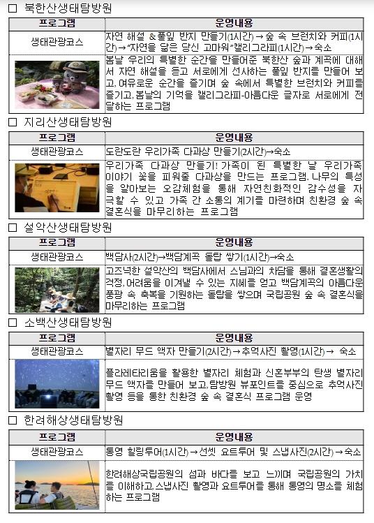 [한국쇼핑몰뉴스, 최영진기자] 환경부 산하 국립공원공단(이사장 송형근)은 취약계층에게 ‘국립공원 숲 속 결혼식’을, 노년 부부에게 ‘리마인드웨딩 사진촬영’을 무상으로 지원하기 위해 4월 8일부터 20일까지 참여자를 모집한다고 밝혔다.