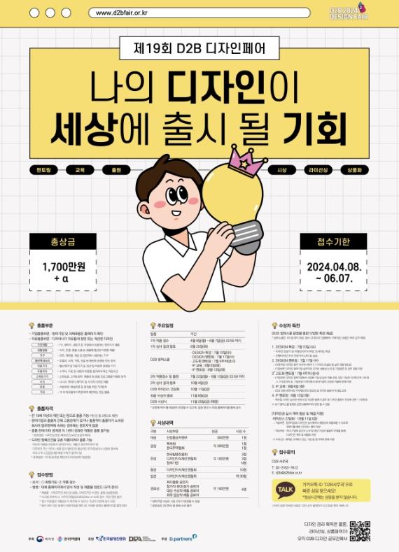 올해 19회째를 맞은 디투비(D2B) 디자인 페어는 참여기업에 창의적이고 우수한 디자인을 공급하고, 디자이너에게는 디자인의 권리화?사업화 과정을 직접 경험할 수 있는 기회를 제공하기 위한 공모전이다.