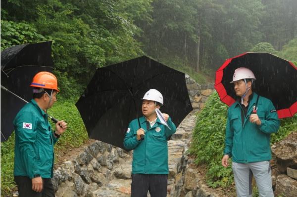 이번 현장점검 지역은 지난해 7월 중부지방을 중심으로 내린 집중호우로 인해 산사태 피해가 발생한 지역으로 산사태 발생 당시 굴착기 등 복구장비를 긴급 투입해 물길 조성 및 토사 제거 등 응급복구를 실시했으며 국비 1억 원을 투입해 사방댐 1개소와 돌수로 등을 설치해 올해 4월 복구를 완료했다.