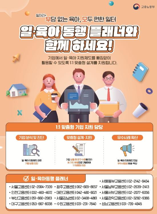 ‘일·육아 동행 플래너’는 ‘일·가정 양립 활성화’ 지원이 필요한 기업을 찾아 정부의 다양한 지원제도를 맞춤형으로 설계하여 제공하는 등 기업을 밀착 지원하는 역할을 할 계획이다.