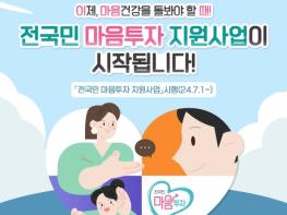 7월 1일부터 시작되는 전국민 마음투자 지원사업을 통해 마음건강을 돌보세요!
