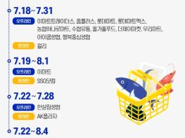마트·온라인몰에서는 '대한민국 수산대전-여름휴가 특별전'을 개최한다. 이번 행사는 7월 17일부터 8월 4일까지 진행되며, 소비자가 마트(18개사)와 온라인몰(27개사)에서 국산 수산물을 구매할 때 구매금액의 최대 50%를 할인받을 수 있다. 이번 행사는 대중성어종과 바다장어, 우럭, 전복, 멍게 등의 수산물에 대해 할인 혜택을 제공하며, 업체별 할인 품목 등 더욱 자세한 내용은 대한민국 수산대전 공식 누리집에서 확인할 수 있다.
