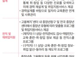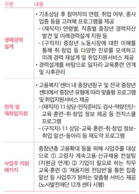 · 생애경력설계, 전직 및 재취업지원, 사업주지원패키지 등의 고용서비스 제공