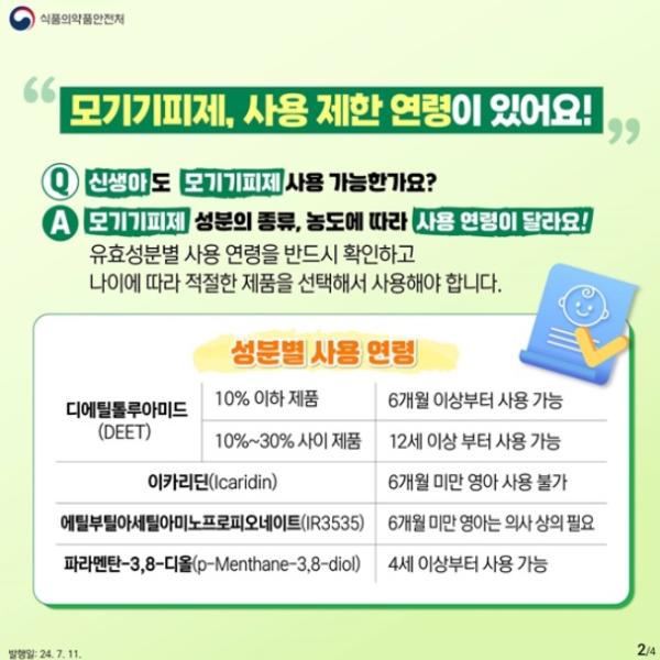 식품의약품안전처, 모기기피제, 생후 몇 개월부터 쓸 수 있을까