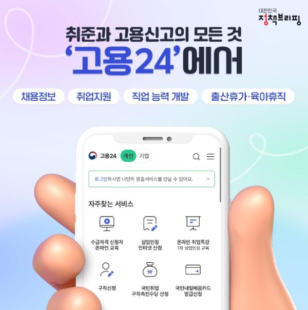 취업준비와 관련된 모든 내용을 고용 24 누리집에서 확인할 수 있습니다!