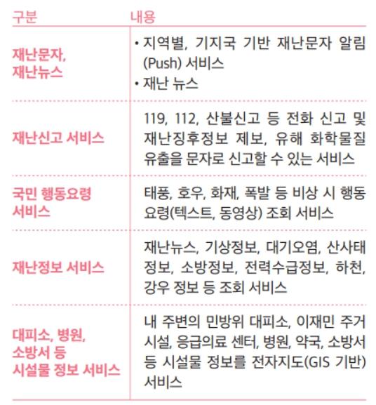· 24개 기관 125종 재난안전정보를 통합하여 연계한 맞춤형 서비스