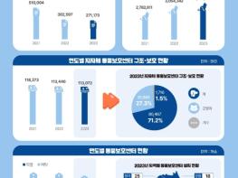 동물의 구조·보호를 위해 지자체가 운영하는 동물보호센터는 2023년 228개소로 전년(239개소) 대비 11개소 감소했으나, 지자체가 직접 운영하는 센터는 7개소가 증가했고 종사 인력과 운영비도 전년대비 각각 10.1%, 26.8% 증가하는 등 동물의 구조·보호에 더 많은 관심과 노력을 기울였다.