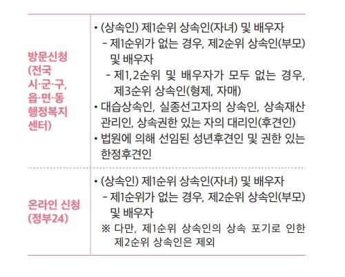 · 신청기한 : 사망일이 속한 달의 말일부터 1년 이내