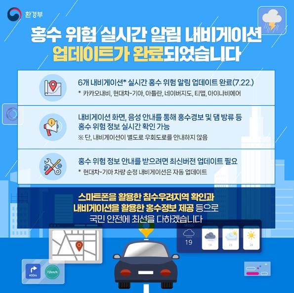 Ⅴ 6개 내비게이션 실시간 홍수 위험 알림 업데이트 완료(7.22.)