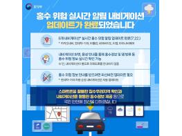 [한국쇼핑몰뉴스, 최영진기자] 홍수 위험 실시간 알림 내비게이션 업데이트가 완료됐습니다.