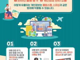 첫째, 여행 관련 후기, 정보 등을 온라인에 게시할 때는 개인정보를 마스킹해야 한다. 둘째, 여행 예약 사이트를 사칭하는 문자와 이메일은 주의해야 한다. 셋째, 의심되는 인터넷주소(URL) 접속과 앱(apk) 설치는 거부해야 한다.