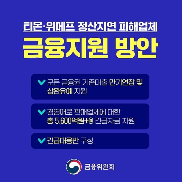 금융위원회, 중소벤처기업부, 금융감독원은 티몬·위메프 정산지연 관련 피해업체의 금융애로를 최소화할 수 있도록 금융권에 협조를 요청했습니다.