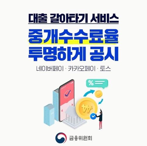 온라인 대출 갈아타기 서비스에 참여 중인 주요 대출비교 플랫폼이 금융회사로부터 수취하는 중개수수료율을 공시했습니다.