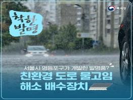 도로 곳곳의 물고임 현상은 보행 불편과 물튀김 피해를 주는데요. 물고임을 해소할 수 있는 친환경 배수장치를 서울시 영등포구에서 개발했습니다!