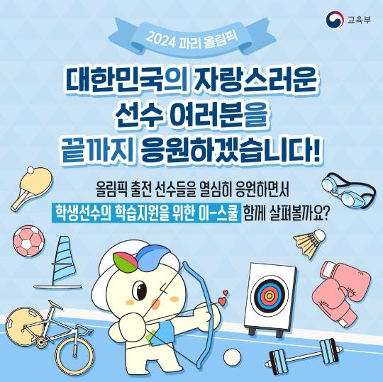 올림픽 출전 선수들을 열심히 응원하면서 학생선수의 학습지원을 위한 이-스쿨 함께 살펴볼까요?