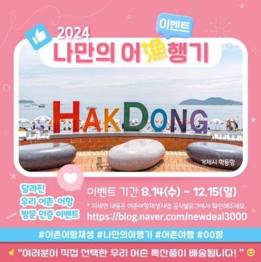 [한국쇼핑몰뉴스, 최영진기자] 해양수산부는 8월 14일부터 12월 15일까지 대국민 방문 인증 이벤트 ‘2024 나만의 어(漁)행기’를 진행한다고 밝혔다.