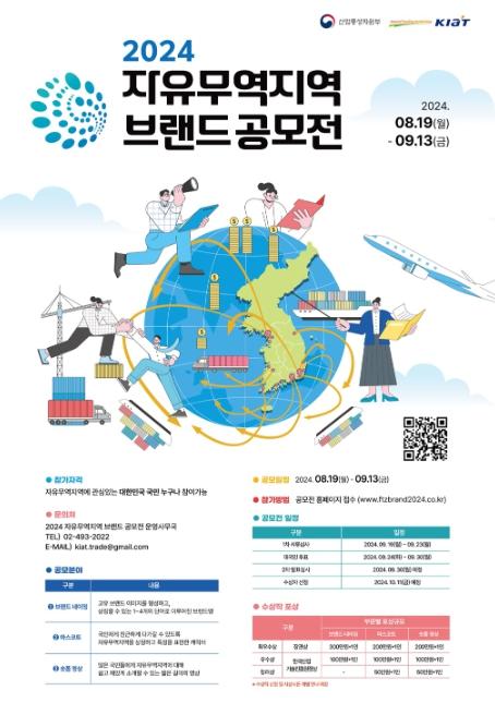 [한국쇼핑몰뉴스, 최영진기자] 산업통상자원부는 전 국민을 대상으로 ‘2024 국민 참여 자유무역지역 브랜드 공모전’을 8월 19일부터 9월 13일까지 4주간 진행한다.