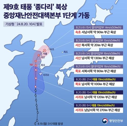 [한국쇼핑몰뉴스, 최영진기자] 제9호 태풍 “종다리” 북상, 중앙재난안전대책본부 1단계 가동