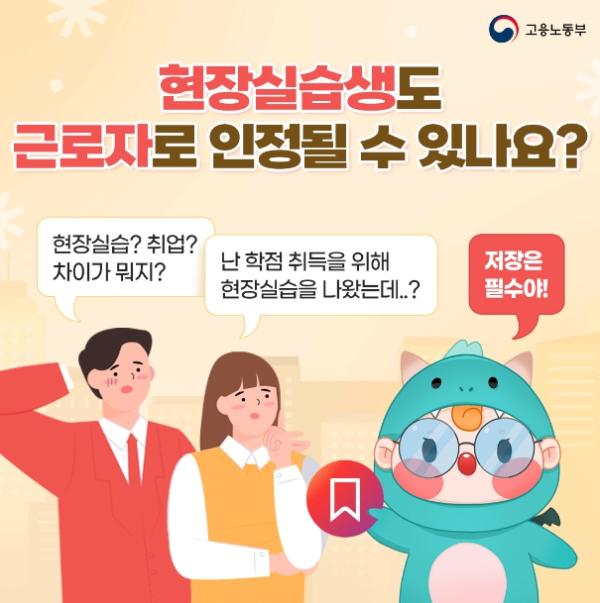 현장실습과 취업의 다른 점부터, 또 현장실습생에게 적용되는 부분은 무엇이 있는지 놓치지 말고 참고하자고용~